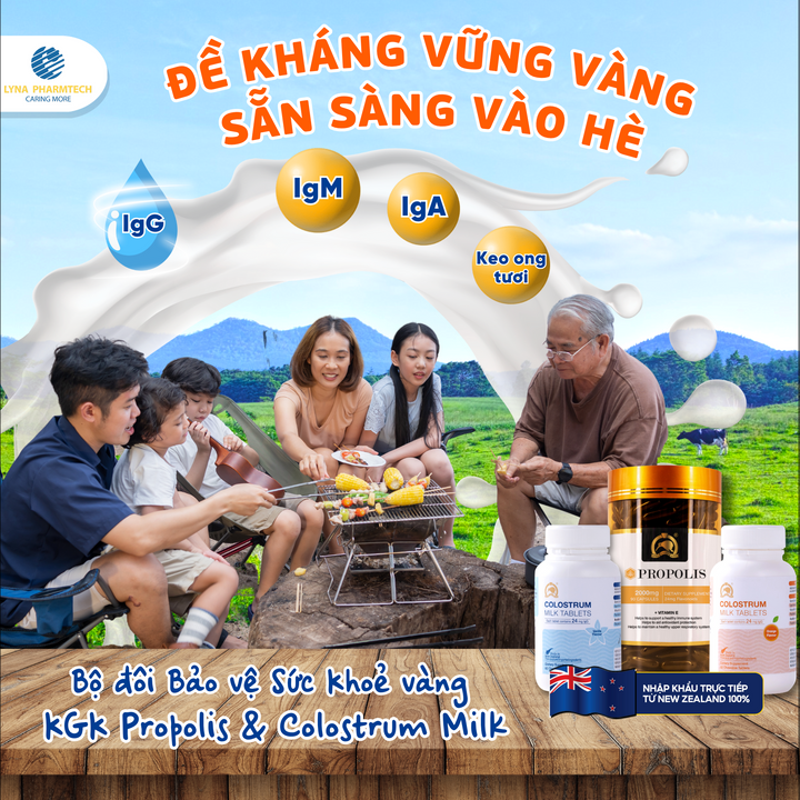 🔑 Bật mí chìa khoá bảo vệ sức khoẻ vàng cho gia đình vào mùa Hè mà nhà Lyna Pharmtech gửi đến bạn Bộ Đôi Sức Khoẻ Vàng KGK Propolis & Colostrum Milk: