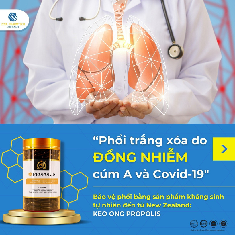 👉 Ngoài ra, duy trì mỗi ngày 1 viên keo ong Propolis hỗ trợ củng cố các tổn thương do Virus gây bệnh gây ra và tăng cường đề kháng, giúp hệ hô hấp khỏe mạnh và miễn nhiễm các loại bệnh nguy hiểm.