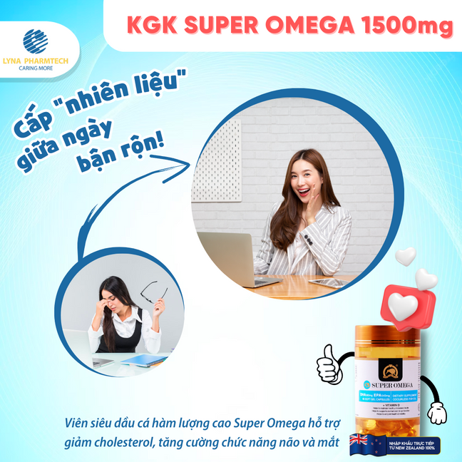 ⚡ Viên siêu dầu cá hàm lượng cao Super Omega hỗ trợ giảm cholesterol, tăng cường chức năng não và mắt:
